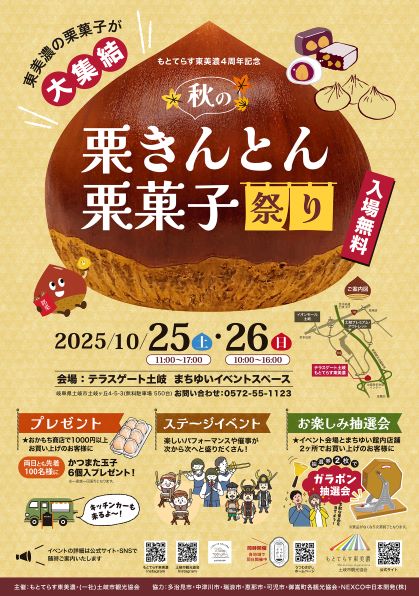 東美濃の特産品「栗きんとん・栗菓子」が一堂に会し、各店舗のこだわりが詰まったおいしさを楽しむことができます。