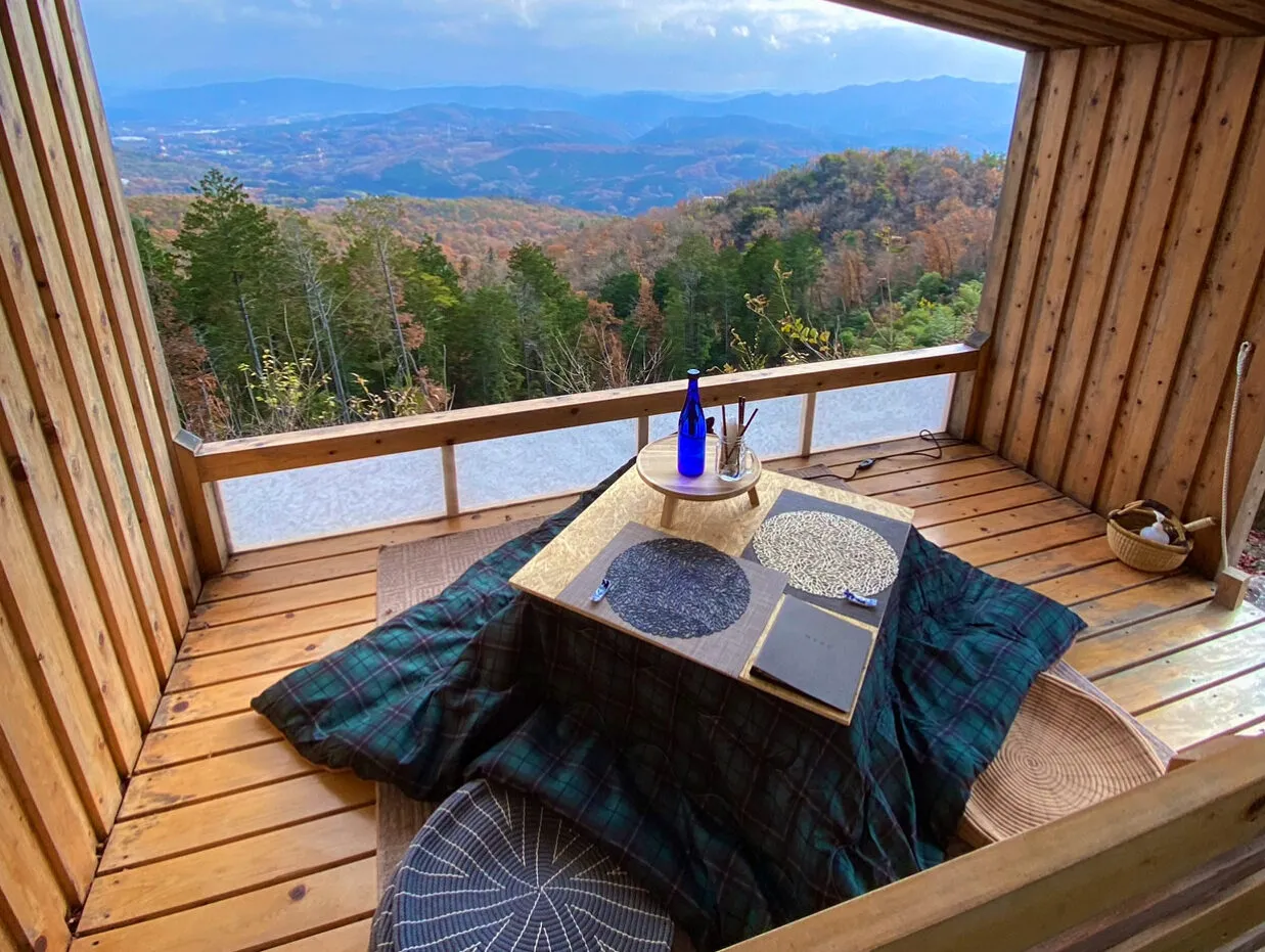 清涯荘に生えていた木や地元の木材を利用して作られた店内や屋外の個室「Hanare」では、四季折々の山々の景色を眺めながら、心と身体が癒されるひとときを過ごすことができ、県内外より年間1万5千人ほどの来場があります。