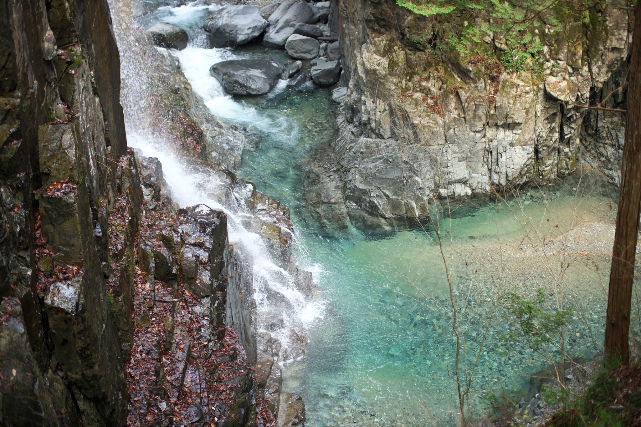 「裏木曽県立自然公園」の一部で、森林浴の森日本100選、岐阜県名水50選にも選定されている、東海地方を代表する峡谷です。