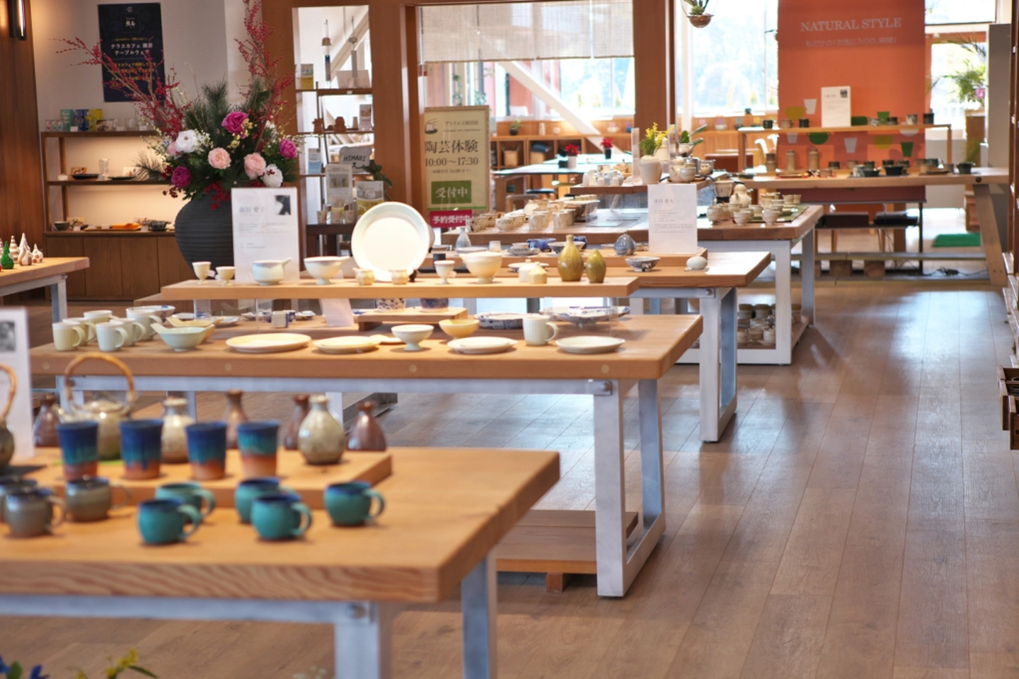 センター内にある、和から洋まで幅広いラインナップが魅力の「織部本店」は、売り場面積が1200坪という東海地区最大級の美濃焼ショップです。店内には食卓周りの商品が常時8000点ほど並んでいます。